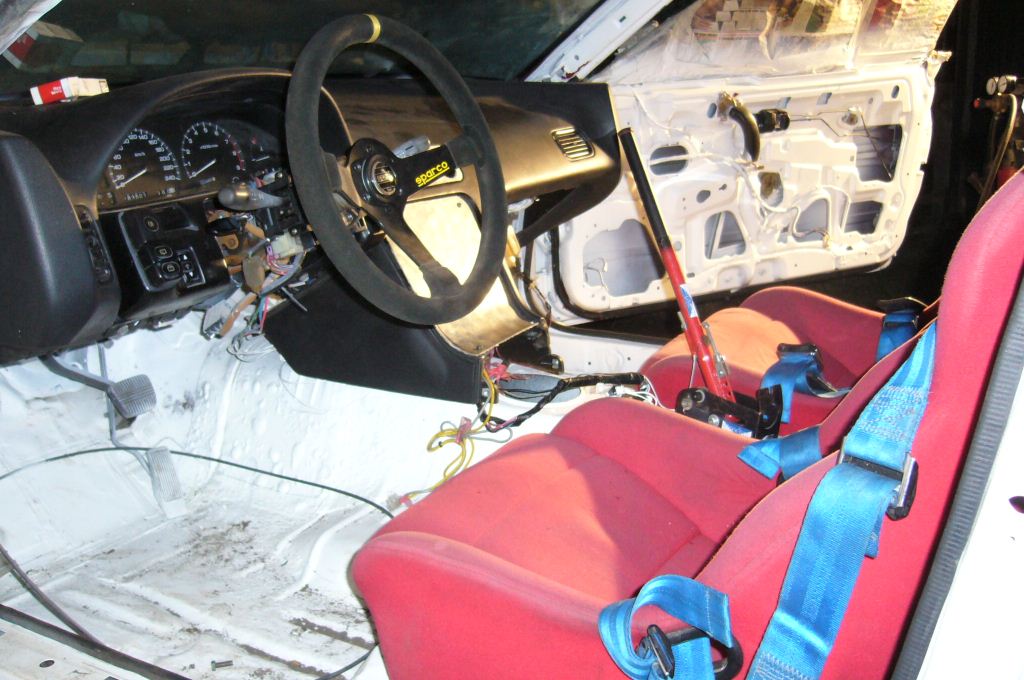 Interiér - volant sparco, ručka Speedpro (lanko), sportovní sedačky, pásy 3 bodové Schroth, upravená přístrojovka